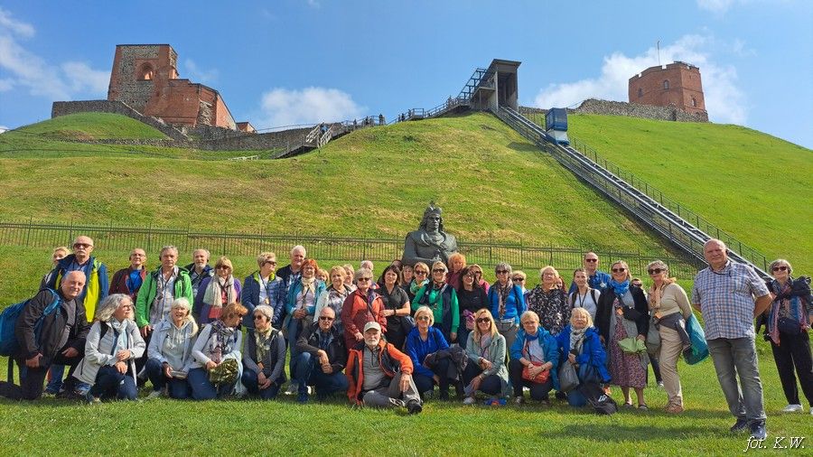 Dzień drugi 9.06.2024 r. zaczynamy od mszy św. w kościele św. Teresy. Wracamy do hotelu w ulewnym deszczu i wyruszamy z naszym wspaniałym przewodnikiem na zwiedzanie Wilna. Zaczynamy od Ostrej Bramy i kaplicy z obrazem Matki Boskiej Ostrobramskiej, cerkwi Świętego Ducha, w której przechowywane są relikwie świętych męczenników Wileńskich - Jana, Antoniego i Eustachego. Dochodzimy do Placu Ratuszowego z Ratuszem, domu z którego wyjechał zesłany do Rosji Adam Mickiewicz i uroczymi uliczkami dochodzimy do Ambasady RP mieszczącej się w pałacu Paców, gdzie bierzemy udział w wyborach do Europarlamentu. Następnie idziemy na Wzgórze Giedymina z Basztą Giedymina i pozostałością Zamku Górnego, oglądamy panoramę Starego Miasta wpisanego na listę UNESCO oraz nowoczesne Centrum Śnipiszki i rzekę Wilję. Zwiedzamy bazylikę archikatedralną św. Stanisława i św. Władysława, gdzie w kaplicy św. Kazimierza pochowany został król polski Aleksander Jagiellończyk, a także serce Władysława IV Wazy. Zwiedzamy z zewnątrz pałac prezydencki wraz z dziedzińcem i idziemy smakować kuchnię litewską - chłodnik i cepeliny. Wracamy do hotelu, ale część wycieczkowiczów wybrała się na nocne zwiedzanie Wilna i zaliczyła Górę Trzech Krzyży.