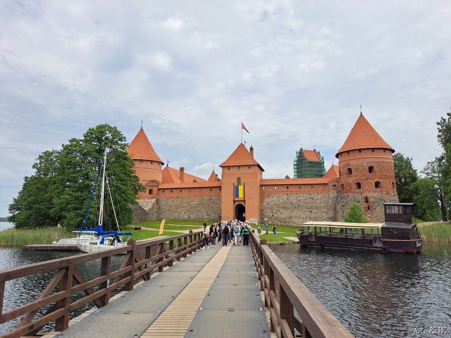 Dzień trzeci 10.06.2024 r. Wyjeżdżamy do Trok, miasta w którym mieszka nieliczna już grupa etniczna Karaimów i znajduje się zrekonstruowany zamek księcia Witolda położony na jeziorze Galwe. Odbywamy rejs statkiem po tym jeziorze i kosztujemy karaimskie przysmaki kybyny. W drodze powrotnej do Wilna zatrzymujemy się w Ponarach, miejscu gdzie litewscy kolaboranci wraz z Niemcami zamordowali w latach 1941-1944 około 100 tys. mieszkańców Wileńszczyzny. Jedziemy na cmentarz Na Rossie i do barokowego kościoła św. Piotra i Pawła na Antokolu, który ufundował Michał Kazimierz Pac. Wnętrze kościoła zdobi ponad 2 tys. rzeźb stiukowych o tematyce biblijnej, mitologicznej i historycznej. Wieczorem dalsze zwiedzanie Wilna - cmentarz bernardyński na Zarzeczu, bardzo stary i zaniedbany, kościół św. Anny, kościół św. Franciszka i Bernarda. Przy kościele stoi pomnik Adama Mickiewicza. Powrót do hotelu późną porą.