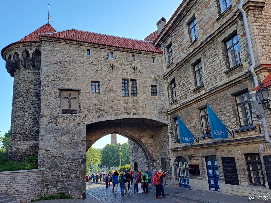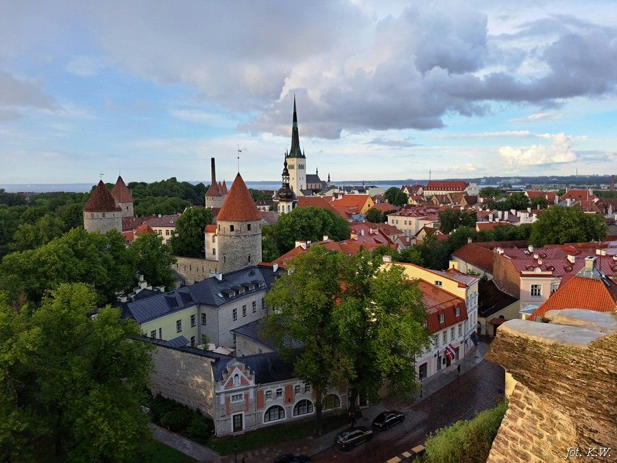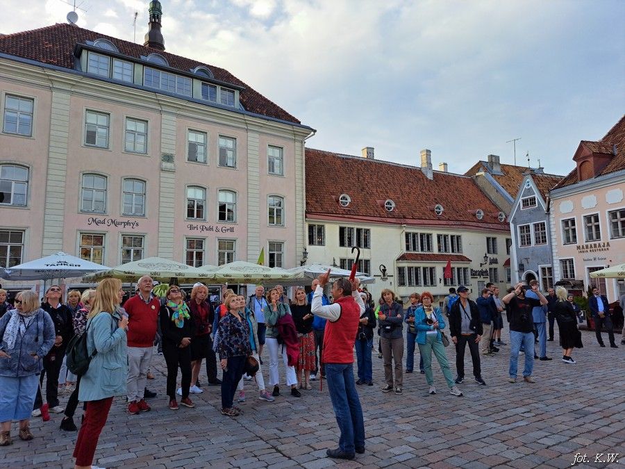 Dzień piąty 12.06.2024 r. I znowu wczesne śniadanie i wyjazd do Estonii na najwyższe wzniesienie Suur Munamagi 317 m n.p.m. Uczestnicy wycieczki deczko niedospani pousypiali w autobusie. Na szczycie Suur Munamagi wyjście na wieżę widokową. Podjeżdżamy do drugiej wieży wyglądającej jak podwójne bocianie gniazdo, którą również zdobywamy i odjeżdżamy do Tallinna. Kwaterujemy się w hotelu St.Olav, mieszczącym się w pięknej zabytkowej kamienicy i wyruszamy na nocne zwiedzanie Tallinna. Trwają białe noce i słońce zachodzi dopiero o godz. 22:30. Idziemy wzdłuż murów obronnych i dochodzimy do prawosławnego soboru św. Aleksandra Newskiego. Dalej widzimy zamek Toompea. Stare Miasto zostało wpisane na listę UNESCO. Składa się z dwóch części - Górnego Miasta położonego na wzgórzu i Dolnego Miasta. Na Górne Miasto prowadzą dwie bramy, Długa Noga i Krótka Noga. Z punktu widokowego na Górnym Mieście oglądamy panoramę Dolnego Miasta, XIV wieczne baszty i średniowieczne kościoły św. Mikołaja i Olafa. Na Placu Ratuszowym podziwiamy gotycki ratusz, przechodzimy przez zaułek św. Katarzyny i dochodzimy do bramy Wiru. Zwiedzanie kończymy przed godz. 23:00.